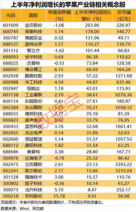 上半年净利润增长的苹果产业链相关概念股出炉上半年净利润增长的苹果产业链相关概念股出炉