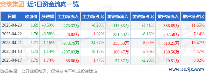 本站消息,截至2025年4月23日收盘蜗牛配资,安泰集团(600408)报收于1.69元,下跌0.59%,换手率1.94%,成交量19.57万手,成交额3320.14万元。