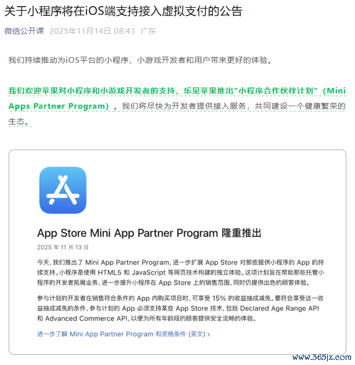 微信小程序官宣将在iOS端支持接入虚拟支付微信小程序官宣将在iOS端支持接入虚拟支付